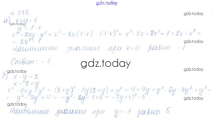 На страницах сайта gdz.today вы найдете учебный и вспомогательный материал, направленный на улучшения знаний школьной программы. ГДЗ - онлайн мир знаний Решение. Упражнения 375 Учебнику по Алгебре для 9 класса Дорофеев, Суворова Просвещение, Просвещение 2016, 2019