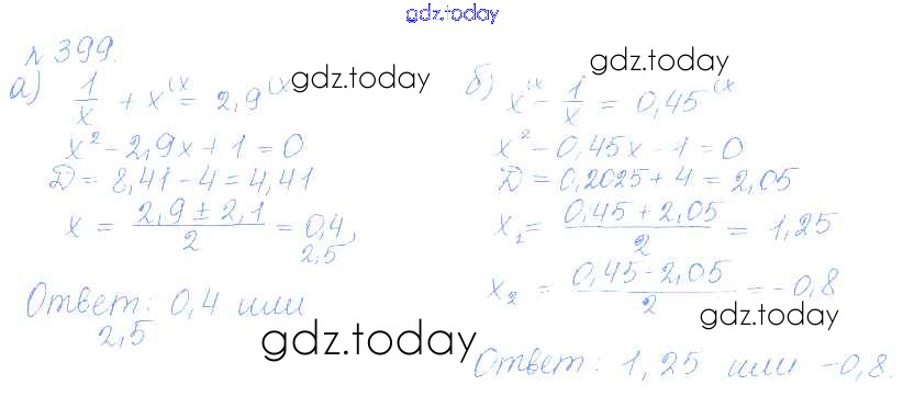 Ответы к Решение. Упражнения 399 Учебнику по Алгебре для 9 класса Дорофеев, Суворова Просвещение, Просвещение 2016, 2019