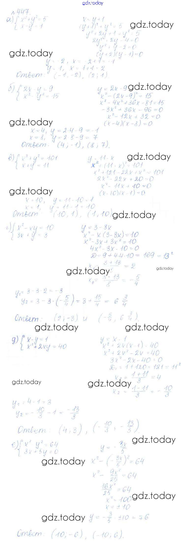 На страницах сайта gdz.today вы найдете учебный и вспомогательный материал, направленный на улучшения знаний школьной программы. ГДЗ - онлайн мир знаний Решение. Упражнения 447 Учебнику по Алгебре для 9 класса Дорофеев, Суворова Просвещение, Просвещение 2016, 2019