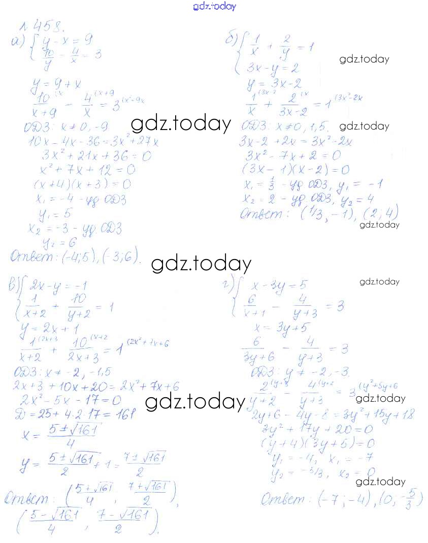 На страницах сайта gdz.today вы найдете учебный и вспомогательный материал, направленный на улучшения знаний школьной программы. ГДЗ - онлайн мир знаний Решение. Упражнения 458 Учебнику по Алгебре для 9 класса Дорофеев, Суворова Просвещение, Просвещение 2016, 2019