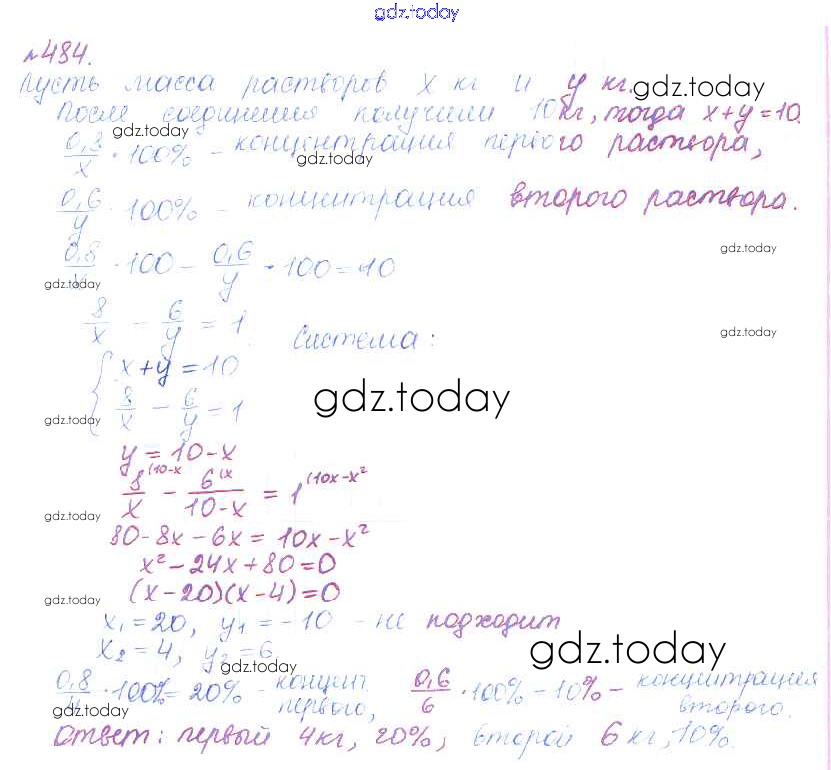 Ответы к Решение. Упражнения 484 Учебнику по Алгебре для 9 класса Дорофеев, Суворова Просвещение, Просвещение 2016, 2019
