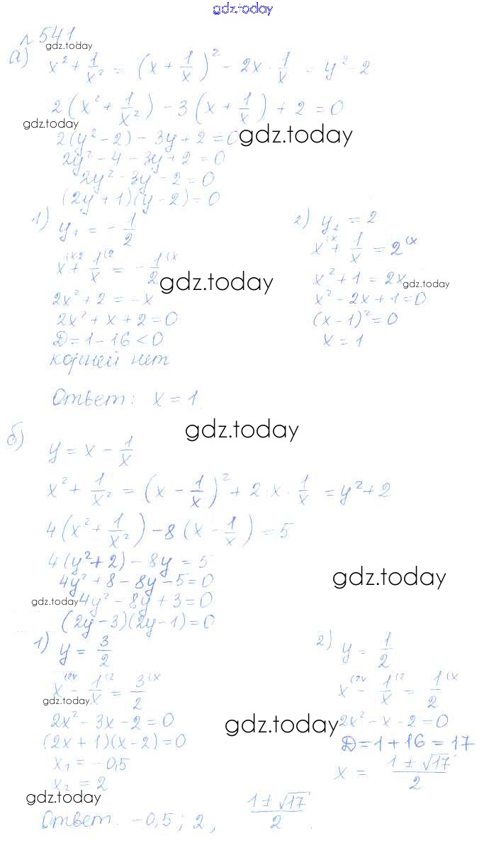 Ответы к Решение. Упражнения 541 Учебнику по Алгебре для 9 класса Дорофеев, Суворова Просвещение, Просвещение 2016, 2019