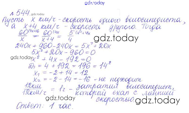 Ответы к Решение. Упражнения 544 Учебнику по Алгебре для 9 класса Дорофеев, Суворова Просвещение, Просвещение 2016, 2019