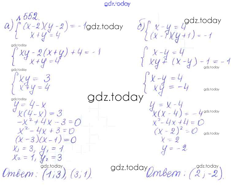 Ответы к Решение. Упражнения 552 Учебнику по Алгебре для 9 класса Дорофеев, Суворова Просвещение, Просвещение 2016, 2019