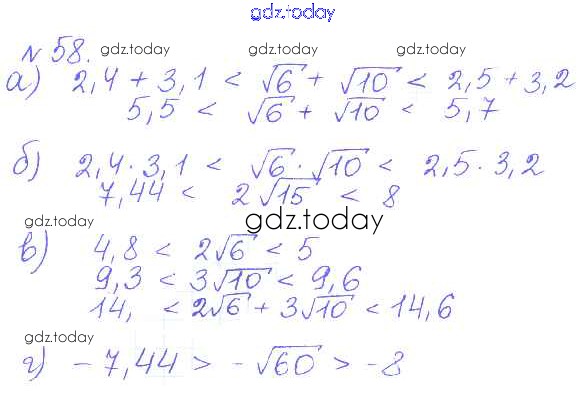 На страницах сайта gdz.today вы найдете учебный и вспомогательный материал, направленный на улучшения знаний школьной программы. ГДЗ - онлайн мир знаний Решение. Упражнения 58 Учебнику по Алгебре для 9 класса Дорофеев, Суворова Просвещение, Просвещение 2016, 2019