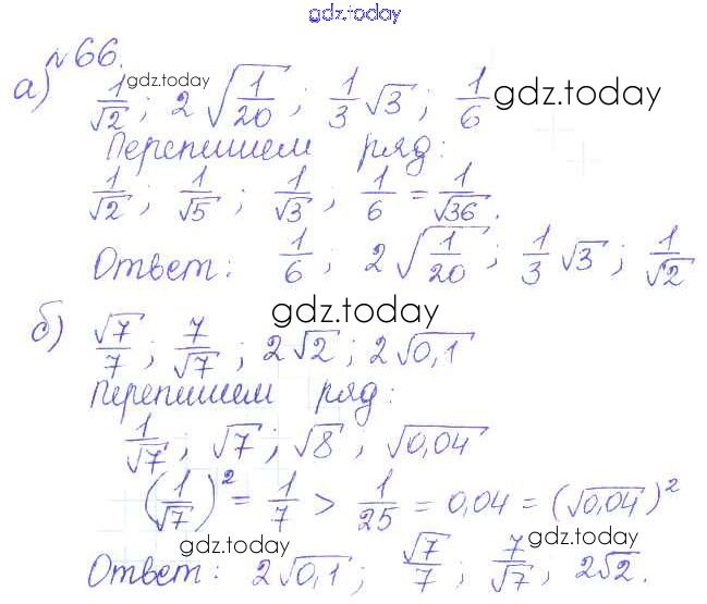 На страницах сайта gdz.today вы найдете учебный и вспомогательный материал, направленный на улучшения знаний школьной программы. ГДЗ - онлайн мир знаний Решение. Упражнения 66 Учебнику по Алгебре для 9 класса Дорофеев, Суворова Просвещение, Просвещение 2016, 2019