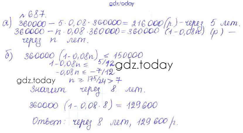 Ответы к Решение. Упражнения 687 Учебнику по Алгебре для 9 класса Дорофеев, Суворова Просвещение, Просвещение 2016, 2019