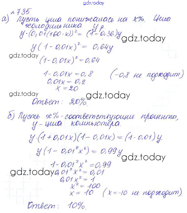 На страницах сайта gdz.today вы найдете учебный и вспомогательный материал, направленный на улучшения знаний школьной программы. ГДЗ - онлайн мир знаний Решение. Упражнения 735 Учебнику по Алгебре для 9 класса Дорофеев, Суворова Просвещение, Просвещение 2016, 2019