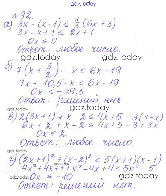 На страницах сайта gdz.today вы найдете учебный и вспомогательный материал, направленный на улучшения знаний школьной программы. ГДЗ - онлайн мир знаний Решение. Упражнения 92 Учебнику по Алгебре для 9 класса Дорофеев, Суворова Просвещение, Просвещение 2016, 2019