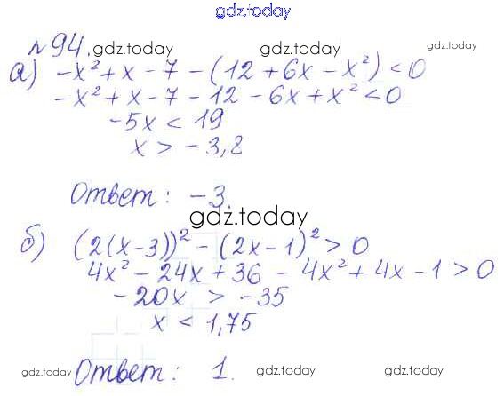 Ответы к Решение. Упражнения 94 Учебнику по Алгебре для 9 класса Дорофеев, Суворова Просвещение, Просвещение 2016, 2019