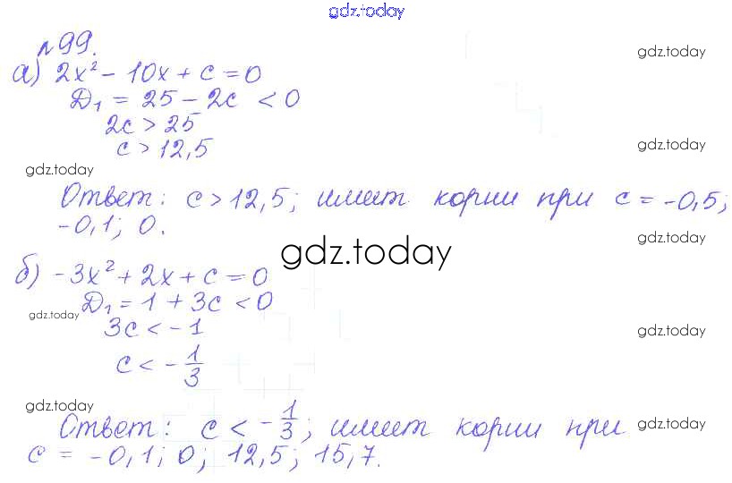 Ответы к Решение. Упражнения 99 Учебнику по Алгебре для 9 класса Дорофеев, Суворова Просвещение, Просвещение 2016, 2019