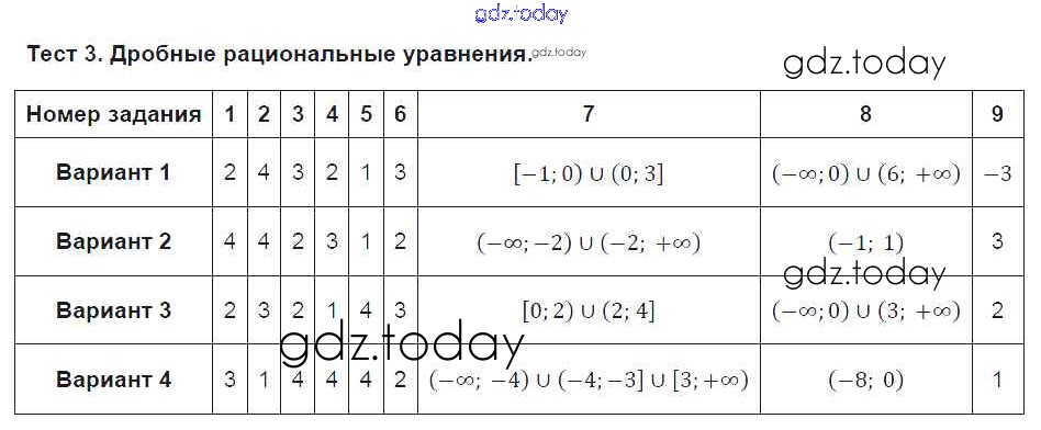 На страницах сайта gdz.today вы найдете учебный и вспомогательный материал, направленный на улучшения знаний школьной программы. ГДЗ - онлайн мир знаний Решение к тестам Тест 3. Дробные рациональные уравнения Тематическим тестам по Алгебре для 9 класса Дудницын, Кронгауз Просвещение 2017