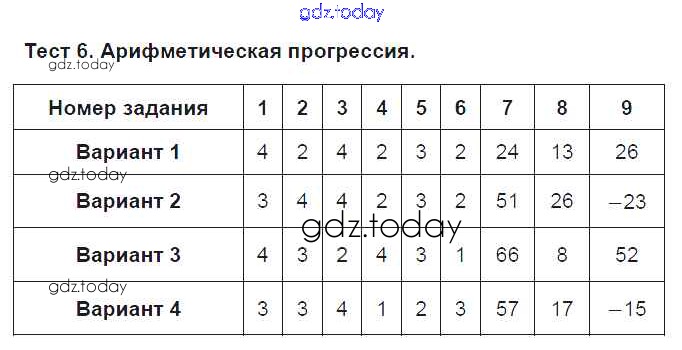 На страницах сайта gdz.today вы найдете учебный и вспомогательный материал, направленный на улучшения знаний школьной программы. ГДЗ - онлайн мир знаний Решение к тестам Тест 6. Арифметическая прогрессия Тематическим тестам по Алгебре для 9 класса Дудницын, Кронгауз Просвещение 2017