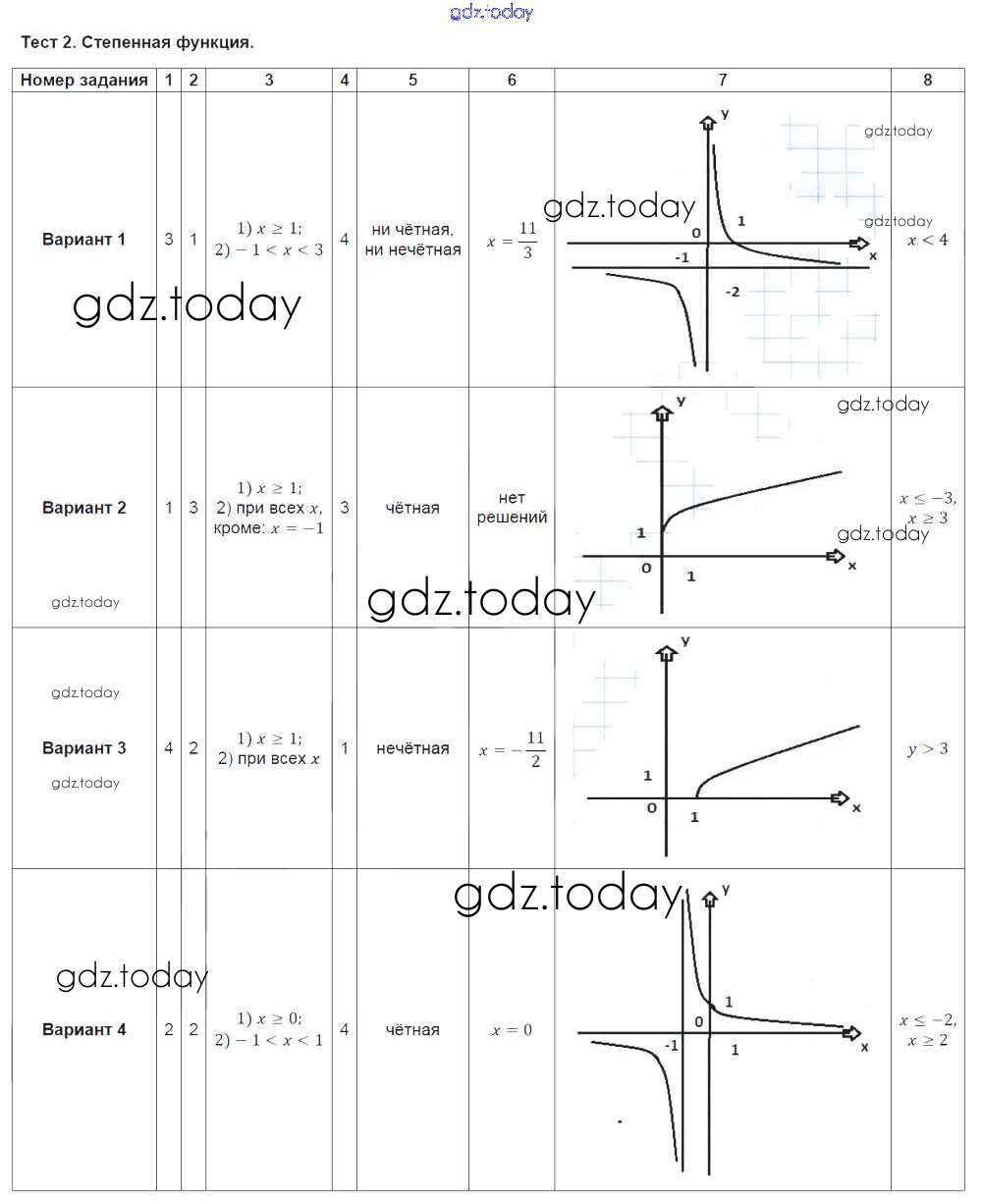 На страницах сайта gdz.today вы найдете учебный и вспомогательный материал, направленный на улучшения знаний школьной программы. ГДЗ - онлайн мир знаний Решение к тестам Тест № 2. Степенная функция Тематическим тестам по Алгебре для 9 класса Ткачева Просвещение 2014