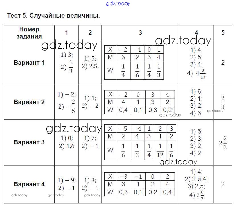 На страницах сайта gdz.today вы найдете учебный и вспомогательный материал, направленный на улучшения знаний школьной программы. ГДЗ - онлайн мир знаний Решение к тестам Тест № 5. Случайные величины Тематическим тестам по Алгебре для 9 класса Ткачева Просвещение 2014