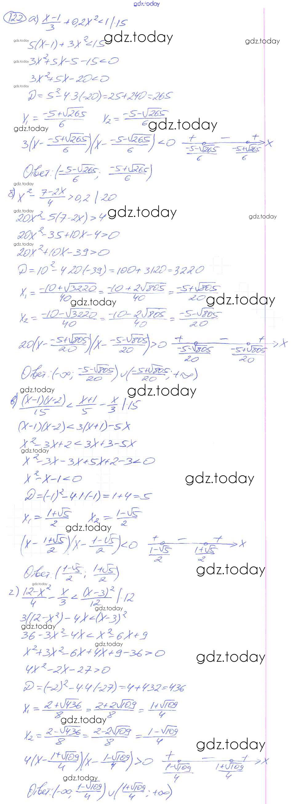 Ответы к Решение к упражнениям 122 Учебнику по Алгебре для 9 класса Никольский, Потапов Просвещение МГУ - школе 2014