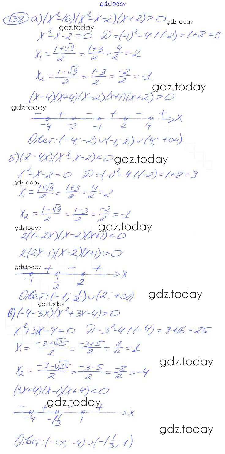 Ответы к Решение к упражнениям 138 Учебнику по Алгебре для 9 класса Никольский, Потапов Просвещение МГУ - школе 2014
