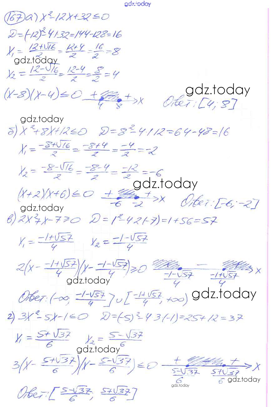 Ответы к Решение к упражнениям 167 Учебнику по Алгебре для 9 класса Никольский, Потапов Просвещение МГУ - школе 2014
