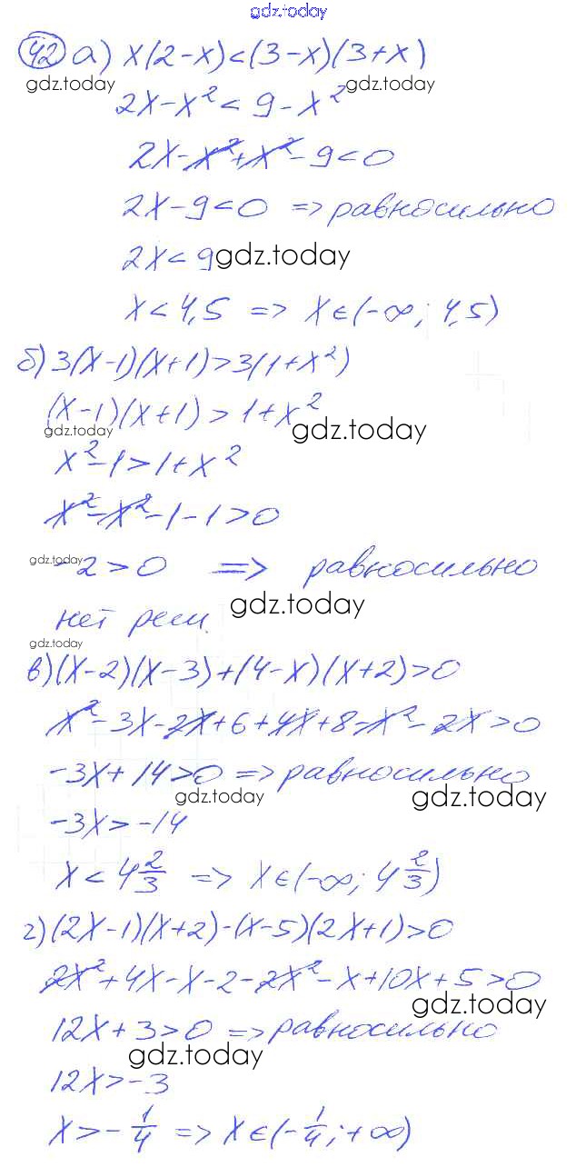 На страницах сайта gdz.today вы найдете учебный и вспомогательный материал, направленный на улучшения знаний школьной программы. ГДЗ - онлайн мир знаний Решение к упражнениям 42 Учебнику по Алгебре для 9 класса Никольский, Потапов Просвещение МГУ - школе 2014