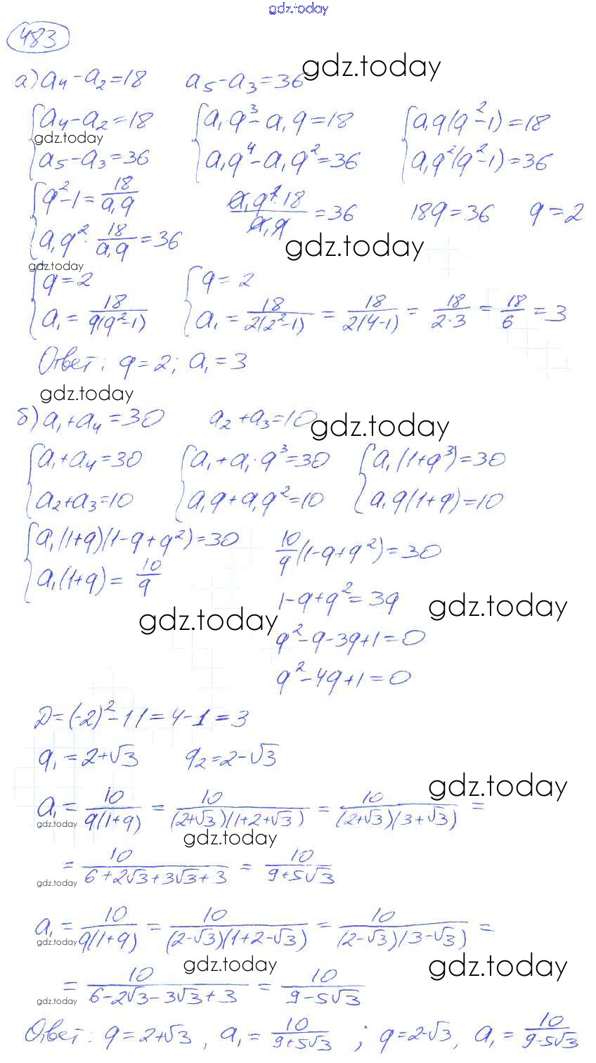 На страницах сайта gdz.today вы найдете учебный и вспомогательный материал, направленный на улучшения знаний школьной программы. ГДЗ - онлайн мир знаний Решение к упражнениям 483 Учебнику по Алгебре для 9 класса Никольский, Потапов Просвещение МГУ - школе 2014