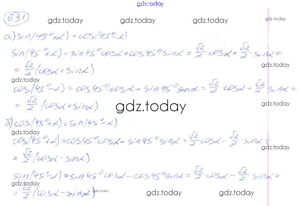 Ответы к Решение к упражнениям 631 Учебнику по Алгебре для 9 класса Никольский, Потапов Просвещение МГУ - школе 2014