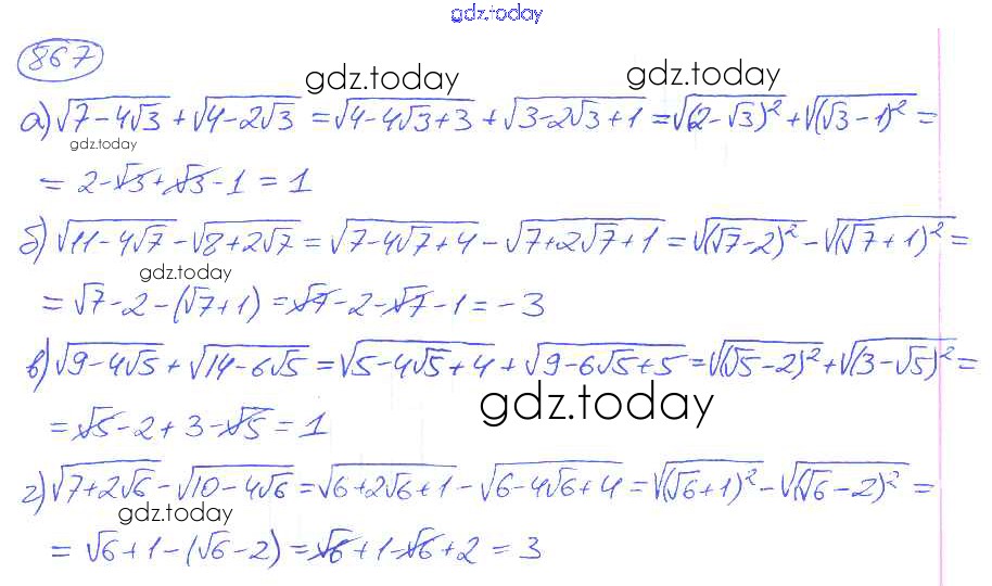 На страницах сайта gdz.today вы найдете учебный и вспомогательный материал, направленный на улучшения знаний школьной программы. ГДЗ - онлайн мир знаний Решение к упражнениям 867 Учебнику по Алгебре для 9 класса Никольский, Потапов Просвещение МГУ - школе 2014