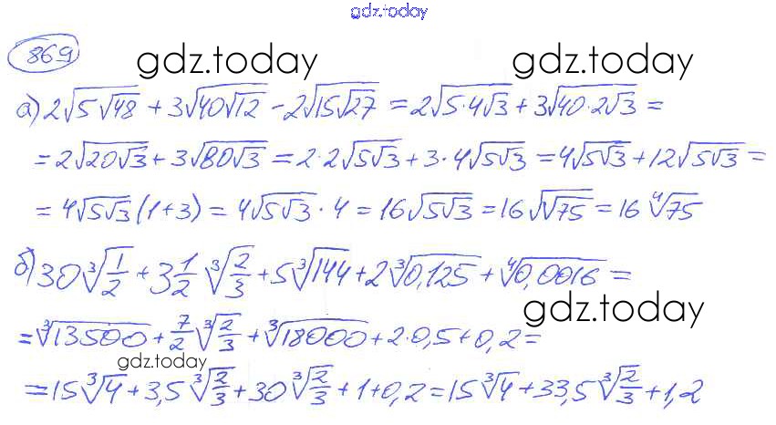 На страницах сайта gdz.today вы найдете учебный и вспомогательный материал, направленный на улучшения знаний школьной программы. ГДЗ - онлайн мир знаний Решение к упражнениям 869 Учебнику по Алгебре для 9 класса Никольский, Потапов Просвещение МГУ - школе 2014