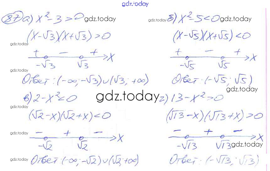 Ответы к Решение к упражнениям 87 Учебнику по Алгебре для 9 класса Никольский, Потапов Просвещение МГУ - школе 2014
