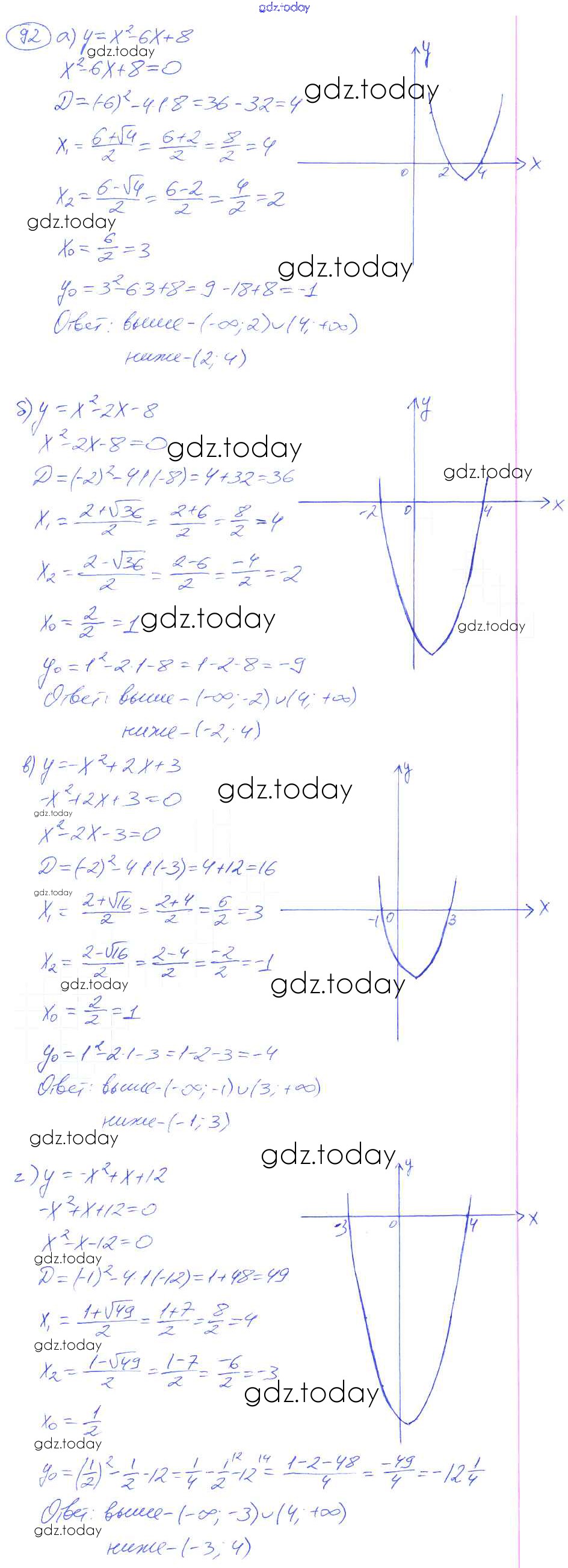 Ответы к Решение к упражнениям 92 Учебнику по Алгебре для 9 класса Никольский, Потапов Просвещение МГУ - школе 2014