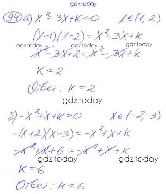 Ответы к Решение к упражнениям 94 Учебнику по Алгебре для 9 класса Никольский, Потапов Просвещение МГУ - школе 2014