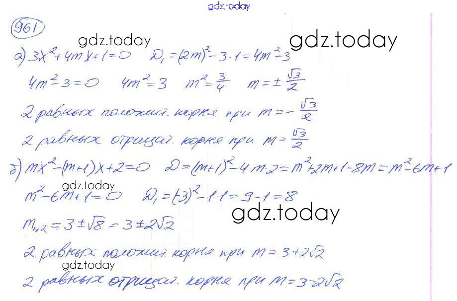 Ответы к Решение к упражнениям 961 Учебнику по Алгебре для 9 класса Никольский, Потапов Просвещение МГУ - школе 2014