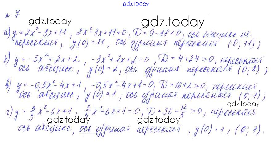 Ответы к О-13. График функции y = ax2 + bx + c Решение к обучающим работам 7 Дидактическим материалам по Алгебре для 9 класса Евстафьева, Карп Просвещение 2017