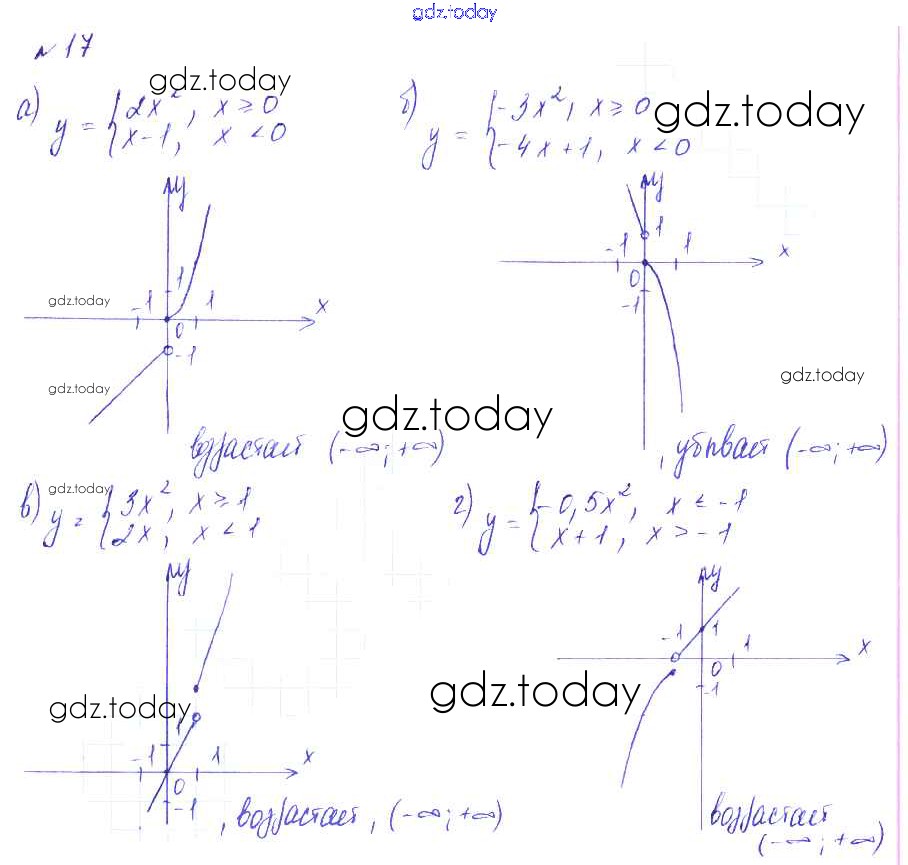 На страницах сайта gdz.today вы найдете учебный и вспомогательный материал, направленный на улучшения знаний школьной программы. ГДЗ - онлайн мир знаний О-9. График и свойства функции y = ax2 Решение к обучающим работам 17 Дидактическим материалам по Алгебре для 9 класса Евстафьева, Карп Просвещение 2017