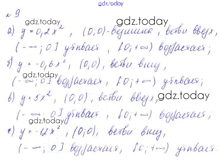 На страницах сайта gdz.today вы найдете учебный и вспомогательный материал, направленный на улучшения знаний школьной программы. ГДЗ - онлайн мир знаний О-9. График и свойства функции y = ax2 Решение к обучающим работам 9 Дидактическим материалам по Алгебре для 9 класса Евстафьева, Карп Просвещение 2017