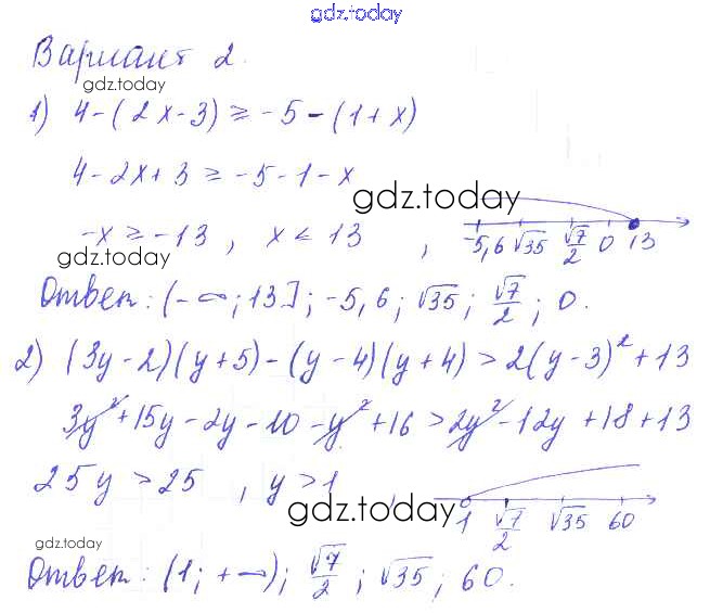На страницах сайта gdz.today вы найдете учебный и вспомогательный материал, направленный на улучшения знаний школьной программы. ГДЗ - онлайн мир знаний П-10. Решение линейных неравенств Решение к проверочным работам Вариант 2 Дидактическим материалам по Алгебре для 9 класса Евстафьева, Карп Просвещение 2017