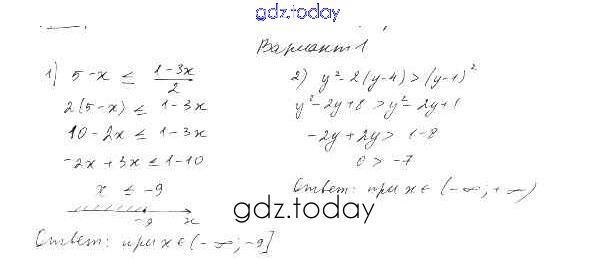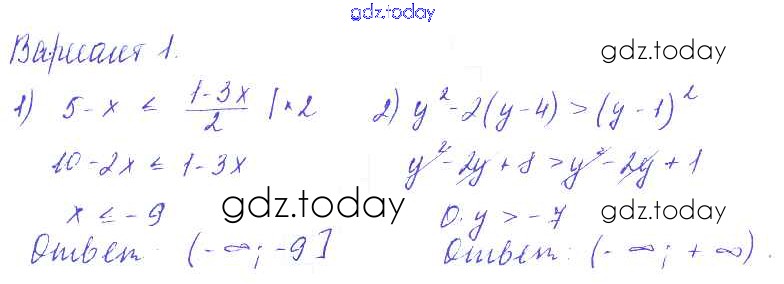 На страницах сайта gdz.today вы найдете учебный и вспомогательный материал, направленный на улучшения знаний школьной программы. ГДЗ - онлайн мир знаний П-11. Решение линейных неравенств Решение к проверочным работам Вариант 1 Дидактическим материалам по Алгебре для 9 класса Евстафьева, Карп Просвещение 2017