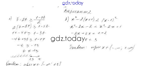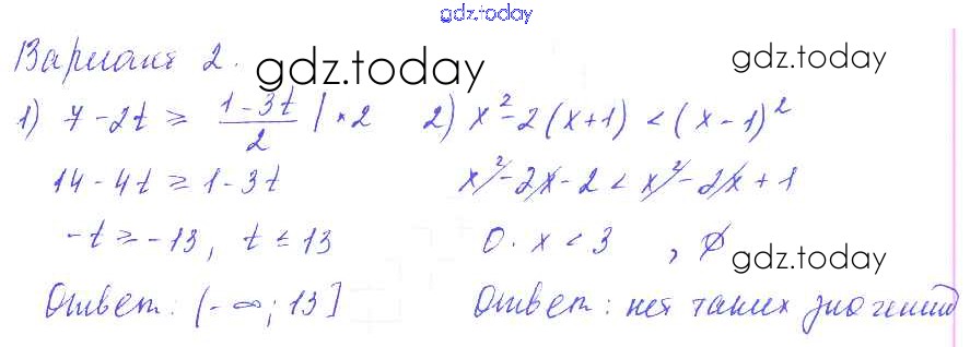 На страницах сайта gdz.today вы найдете учебный и вспомогательный материал, направленный на улучшения знаний школьной программы. ГДЗ - онлайн мир знаний П-11. Решение линейных неравенств Решение к проверочным работам Вариант 2 Дидактическим материалам по Алгебре для 9 класса Евстафьева, Карп Просвещение 2017