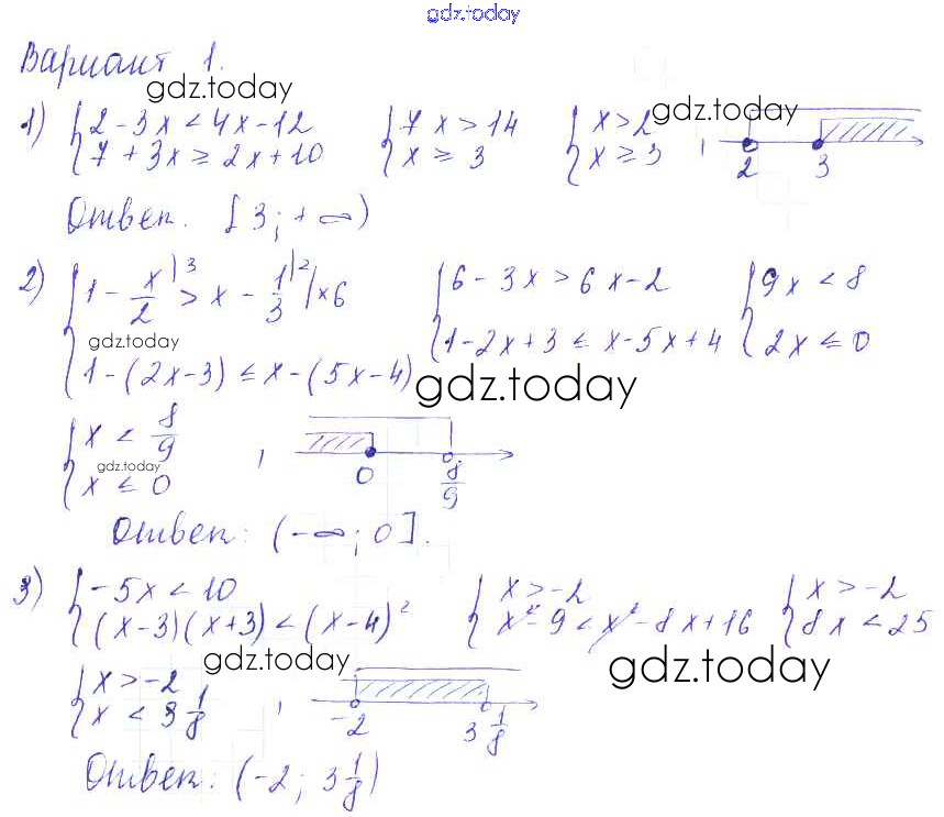 Ответы к П-13. Решение систем неравенств Решение к проверочным работам Вариант 1 Дидактическим материалам по Алгебре для 9 класса Евстафьева, Карп Просвещение 2017