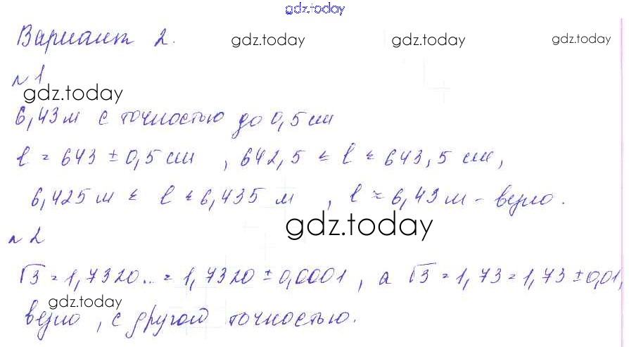 На страницах сайта gdz.today вы найдете учебный и вспомогательный материал, направленный на улучшения знаний школьной программы. ГДЗ - онлайн мир знаний П-17. Измерение точностью до... Решение к проверочным работам Вариант 2 Дидактическим материалам по Алгебре для 9 класса Евстафьева, Карп Просвещение 2017