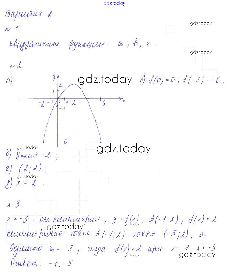 Ответы к П-18. Какую функцию называют квадратичной Решение к проверочным работам Вариант 2 Дидактическим материалам по Алгебре для 9 класса Евстафьева, Карп Просвещение 2017