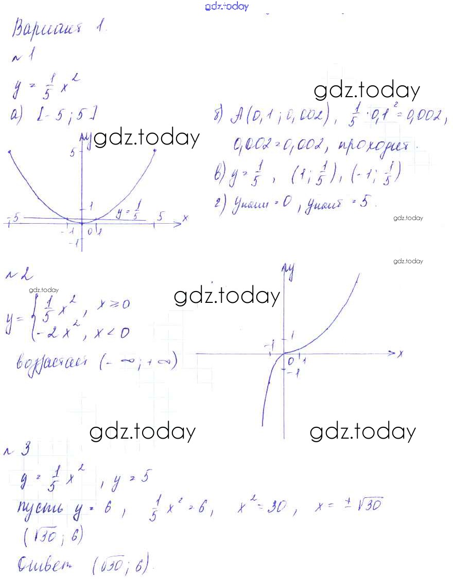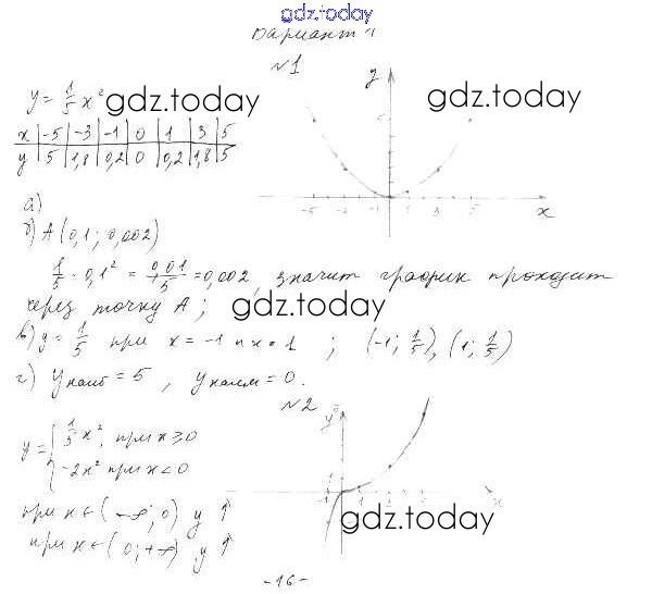На страницах сайта gdz.today вы найдете учебный и вспомогательный материал, направленный на улучшения знаний школьной программы. ГДЗ - онлайн мир знаний П-19. График и свойства функции y = ax2 Решение к проверочным работам Вариант 1 Дидактическим материалам по Алгебре для 9 класса Евстафьева, Карп Просвещение 2017