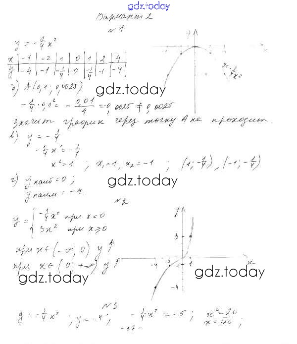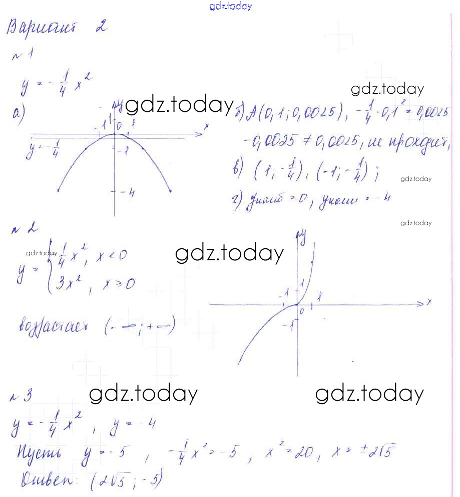 На страницах сайта gdz.today вы найдете учебный и вспомогательный материал, направленный на улучшения знаний школьной программы. ГДЗ - онлайн мир знаний П-19. График и свойства функции y = ax2 Решение к проверочным работам Вариант 2 Дидактическим материалам по Алгебре для 9 класса Евстафьева, Карп Просвещение 2017