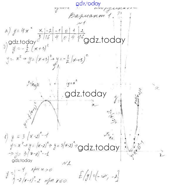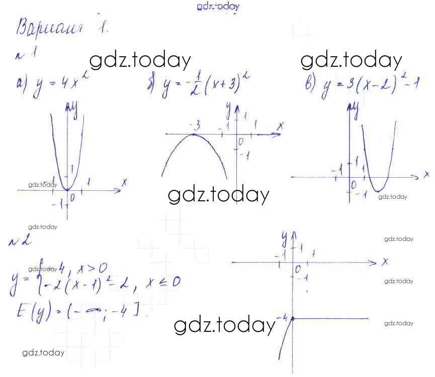 На страницах сайта gdz.today вы найдете учебный и вспомогательный материал, направленный на улучшения знаний школьной программы. ГДЗ - онлайн мир знаний П-20. Сдвиг графика функции y = ax2 вдоль осей координат Решение к проверочным работам Вариант 1 Дидактическим материалам по Алгебре для 9 класса Евстафьева, Карп Просвещение 2017
