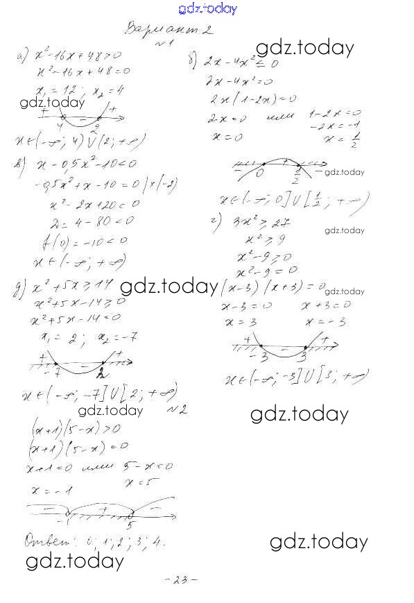 На страницах сайта gdz.today вы найдете учебный и вспомогательный материал, направленный на улучшения знаний школьной программы. ГДЗ - онлайн мир знаний П-22. Квадратные неравенства Решение к проверочным работам Вариант 2 Дидактическим материалам по Алгебре для 9 класса Евстафьева, Карп Просвещение 2017