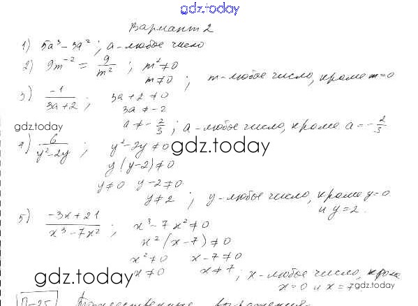 На страницах сайта gdz.today вы найдете учебный и вспомогательный материал, направленный на улучшения знаний школьной программы. ГДЗ - онлайн мир знаний П-24. Область определения выражения Решение к проверочным работам Вариант 2 Дидактическим материалам по Алгебре для 9 класса Евстафьева, Карп Просвещение 2017