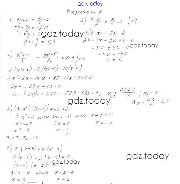На страницах сайта gdz.today вы найдете учебный и вспомогательный материал, направленный на улучшения знаний школьной программы. ГДЗ - онлайн мир знаний П-28. Целые уравнения Решение к проверочным работам Вариант 2 Дидактическим материалам по Алгебре для 9 класса Евстафьева, Карп Просвещение 2017