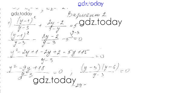 На страницах сайта gdz.today вы найдете учебный и вспомогательный материал, направленный на улучшения знаний школьной программы. ГДЗ - онлайн мир знаний П-29. Дробные уравнения Решение к проверочным работам Вариант 2 Дидактическим материалам по Алгебре для 9 класса Евстафьева, Карп Просвещение 2017