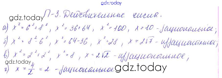 На страницах сайта gdz.today вы найдете учебный и вспомогательный материал, направленный на улучшения знаний школьной программы. ГДЗ - онлайн мир знаний П-3. Действительные числа Решение к проверочным работам Вариант 1 Дидактическим материалам по Алгебре для 9 класса Евстафьева, Карп Просвещение 2017