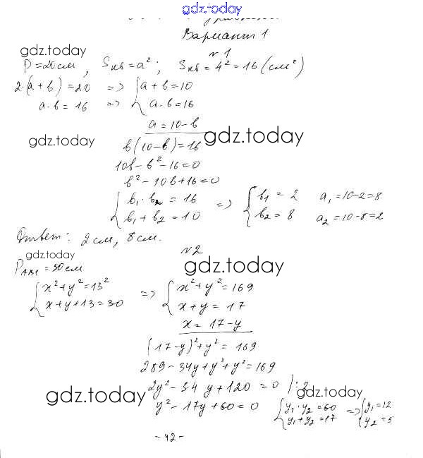 На страницах сайта gdz.today вы найдете учебный и вспомогательный материал, направленный на улучшения знаний школьной программы. ГДЗ - онлайн мир знаний П-37. Решение задач с помощью систем уравнений Решение к проверочным работам Вариант 1 Дидактическим материалам по Алгебре для 9 класса Евстафьева, Карп Просвещение 2017