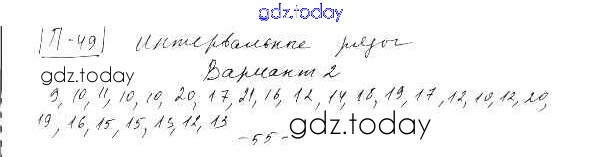 На страницах сайта gdz.today вы найдете учебный и вспомогательный материал, направленный на улучшения знаний школьной программы. ГДЗ - онлайн мир знаний П-49. Интервальные ряды Решение к проверочным работам Вариант 2 Дидактическим материалам по Алгебре для 9 класса Евстафьева, Карп Просвещение 2017